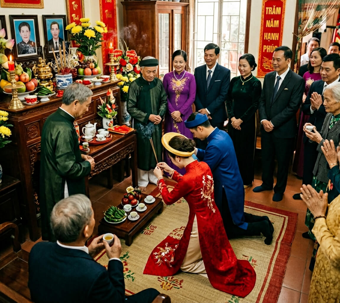 Chúng tôi đảm bảo sự đồng bộ về hình ảnh, thái độ và cách ứng xử, giúp buổi lễ diễn ra tự nhiên, trang trọng và đúng chuẩn phong tục.